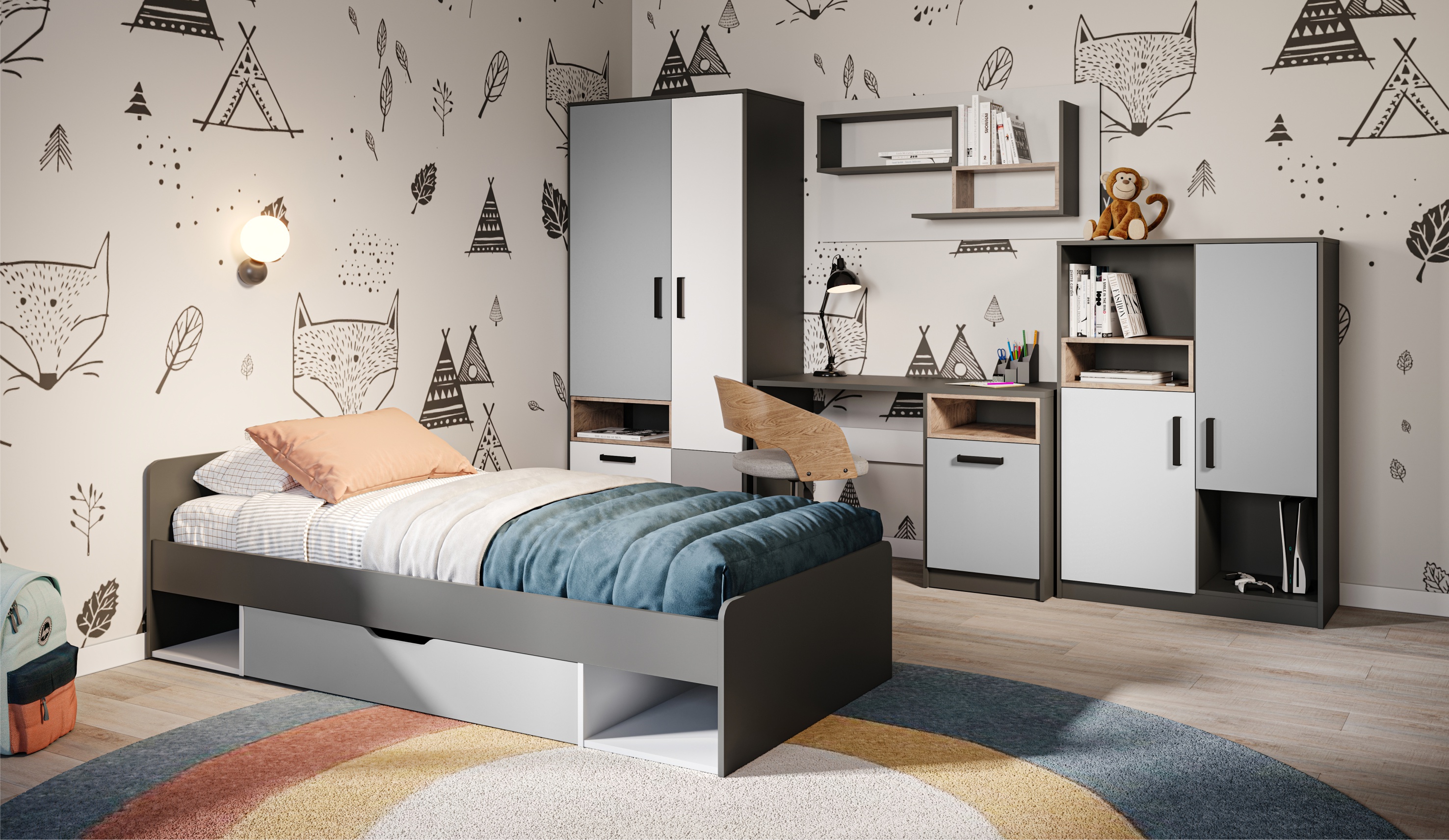 Современный функциональный набор с привлекательным лаконичным дизайном идеально впишется в интерьеры для детской и подростковой комнаты в скандинавском стиле. Комбинированные фасады в нейтральной цветовой гамме создают гармоничную атмосферу для развития ребенка, настраивают на положительный лад. Широкий модульный ряд позволяет выбрать подходящий функционал для обустройства комнаты.