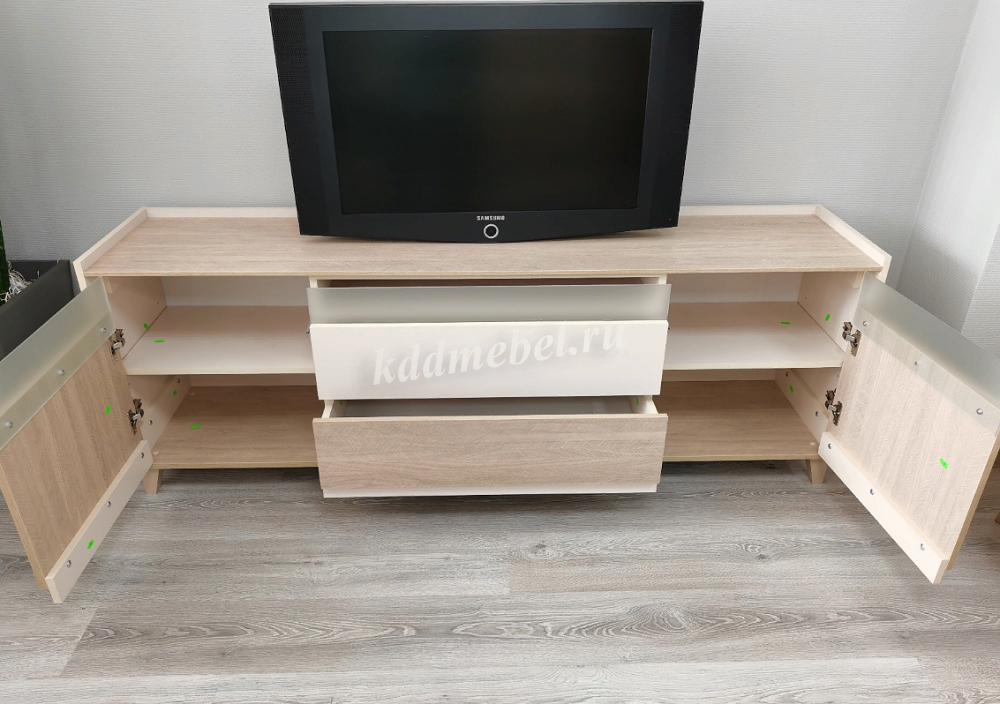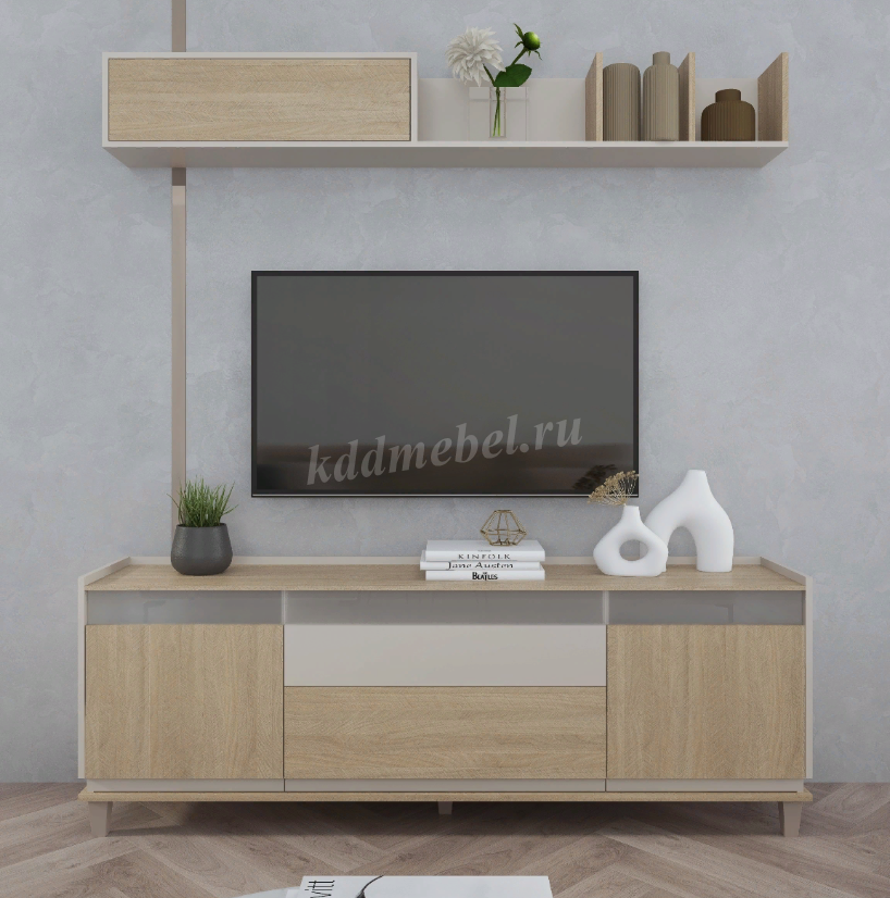 комплектация гостиной с вместительной тумбой для телевизоров с диагональною до 75 дюймов.
