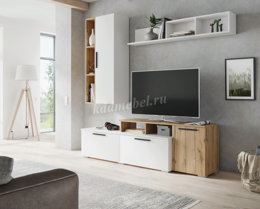 Ультрамодная и компактная гостиная Альберо станет украшением Вашего дома! Коллекция представлена навесными шкафами-пеналами, тумбами под ТВ-аппаратуру, открытыми стеллажами и навесной полкой. Благодаря разнообразию модулей Вы сможете расположить все Ваши вещи: бытовые мелочи, предметы декора, книги, технику и многое другое. Основным цветом мебели выступает белый: освежает интерьер помещения и визуально расширяет пространство. В сочетании с благородным стильным серым графитом белый цвет раскрывается по-новому.