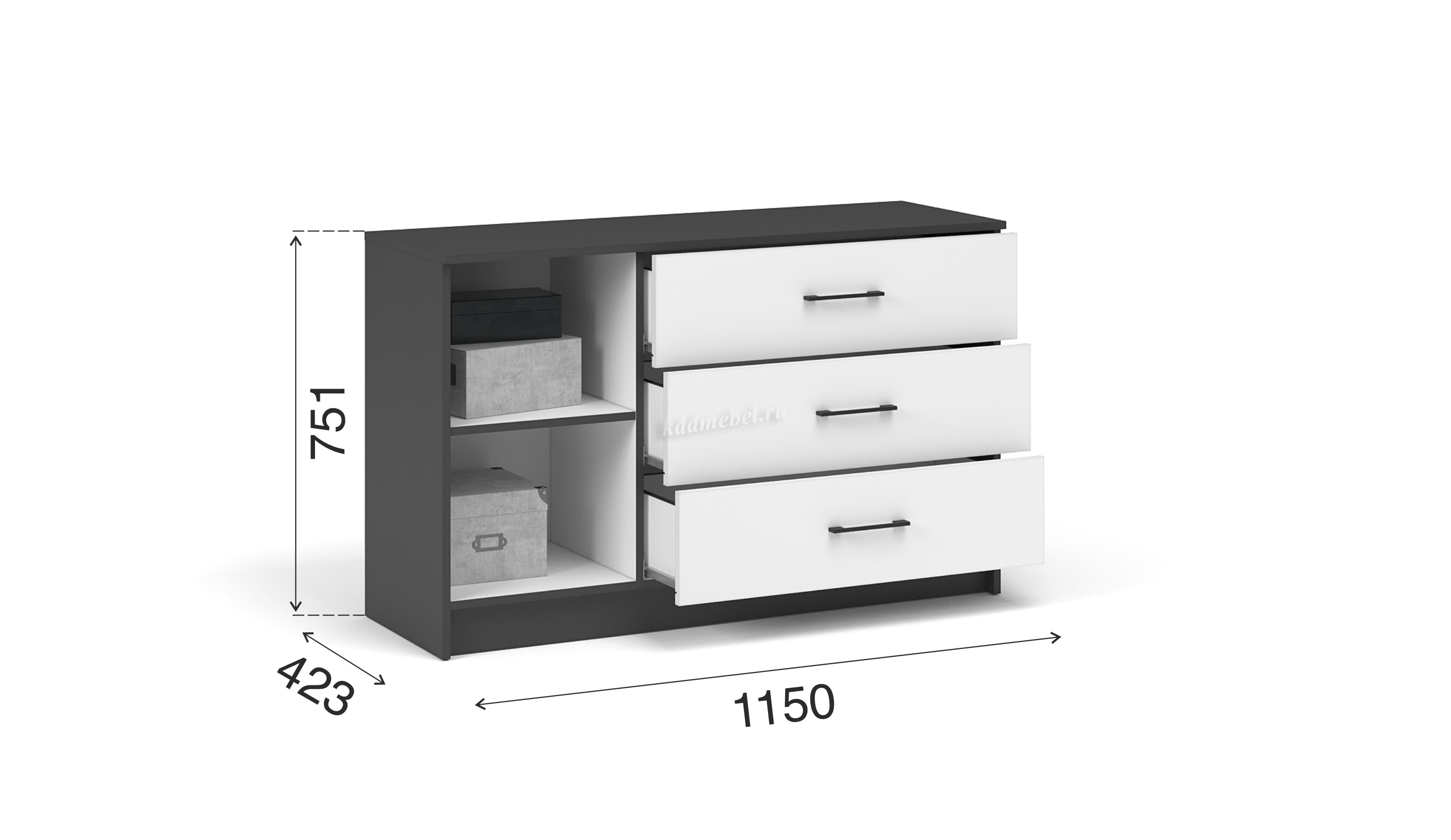 Описание Комод 1д.3 ящ. Чикаго (Антрацит/Белый)