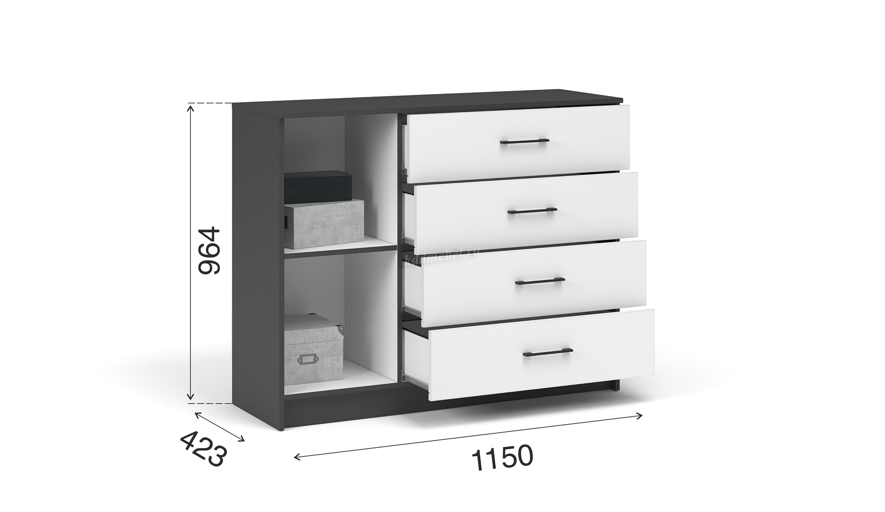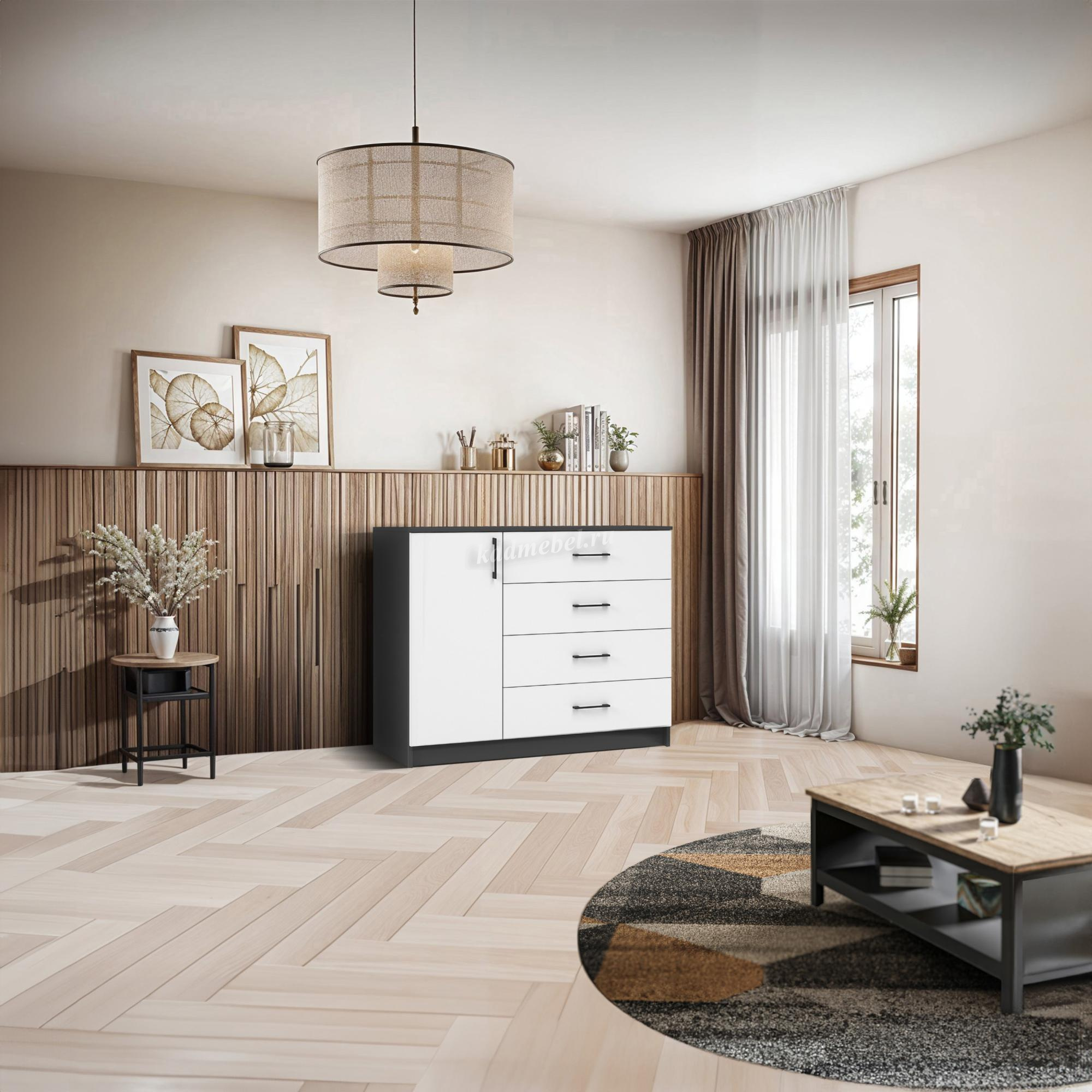 Описание Комод Чикаго 1д 4 ящ (Антрацит/Белый)