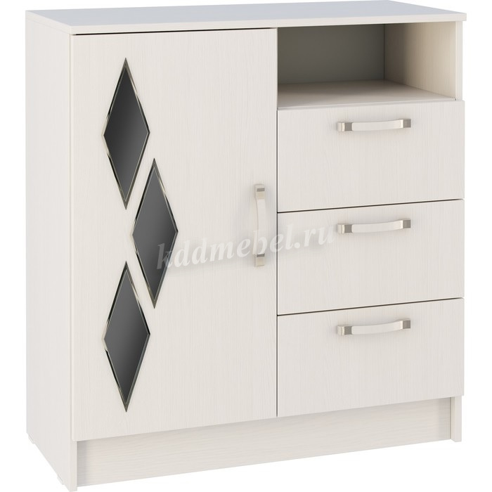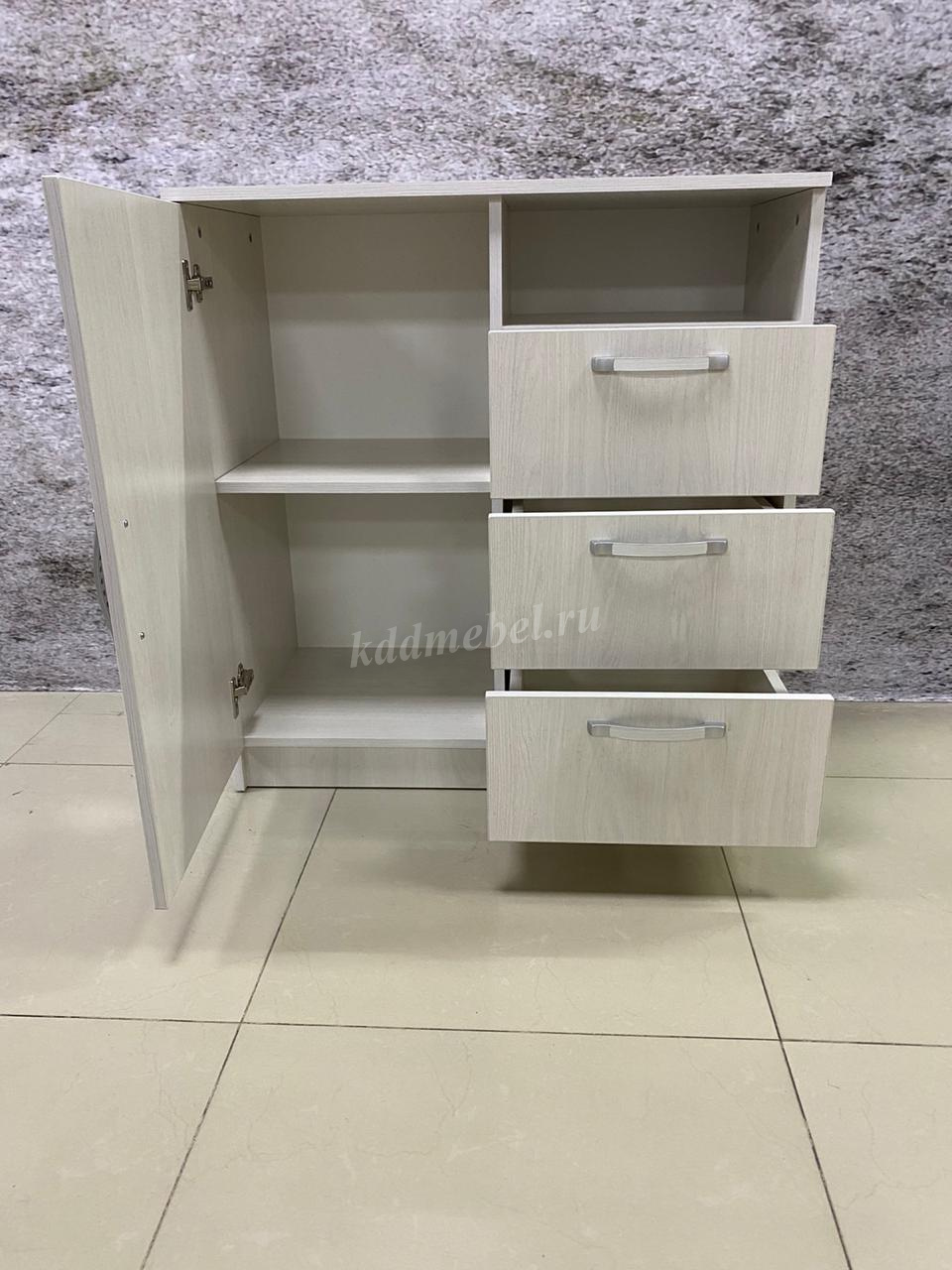 Дно ящиков и задние стенки изделий выполнены из облагороженного ЛДВП белого цвета.
