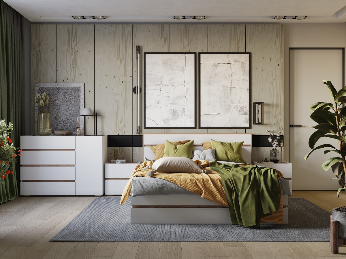 Спальня "Аркон" представляет собой идеальное сочетание функциональности и стильного дизайна. Благодаря своей современной конструкции и чистым линиям, спальня станет гармоничным дополнением к любому интерьеру. Она добавит Вам шарма и стиля, создавая уютную и современную атмосферу.