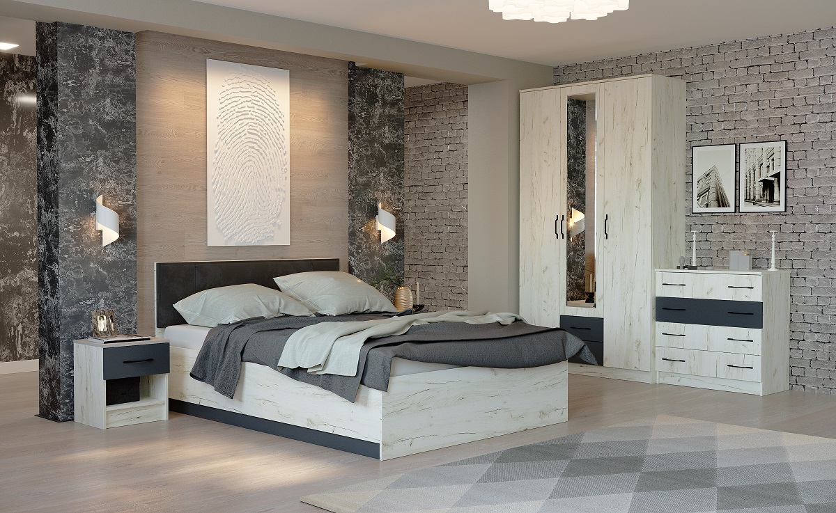 Модульная спальня Беатрис (Крафт белый/Антрацит)
