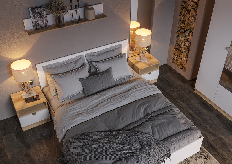 Все элементы комплекта можно комбинировать и расставлять по своему усмотрению, создавая уникальное пространство спальни в соответствии с вашими потребностями и предпочтениями.