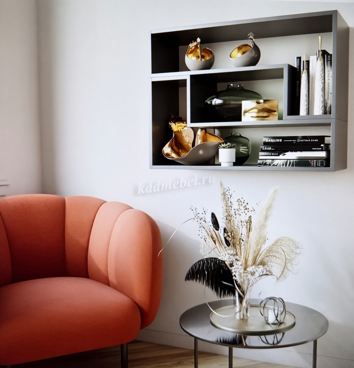 Такой прием позволит вам организовать дополнительное место хранения для книг и предметов декора в любой комнате. Её можно крепить на стену, а можно и разместить на полу.