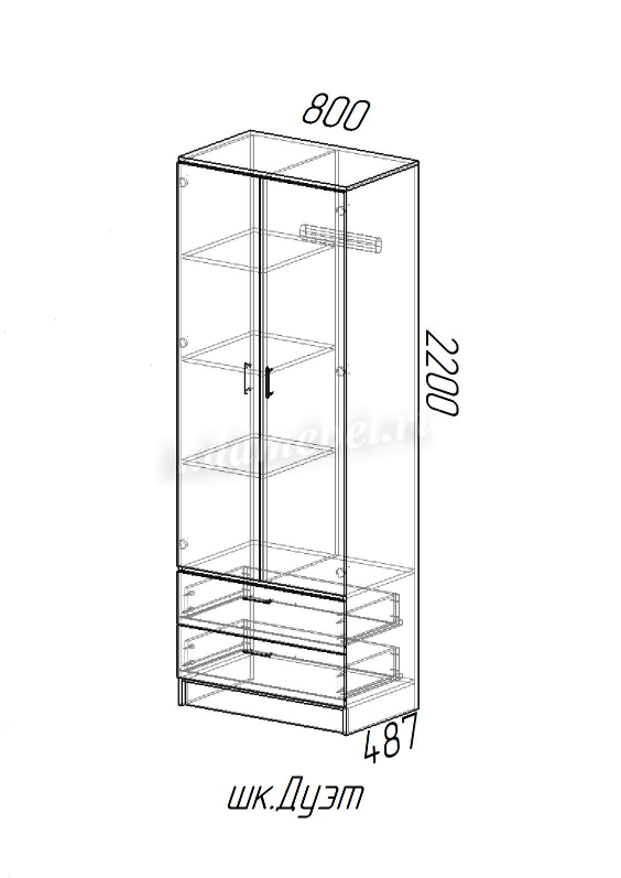 Описание Шкаф Дуэт комбинированный (Дуб Вотан/Белый)