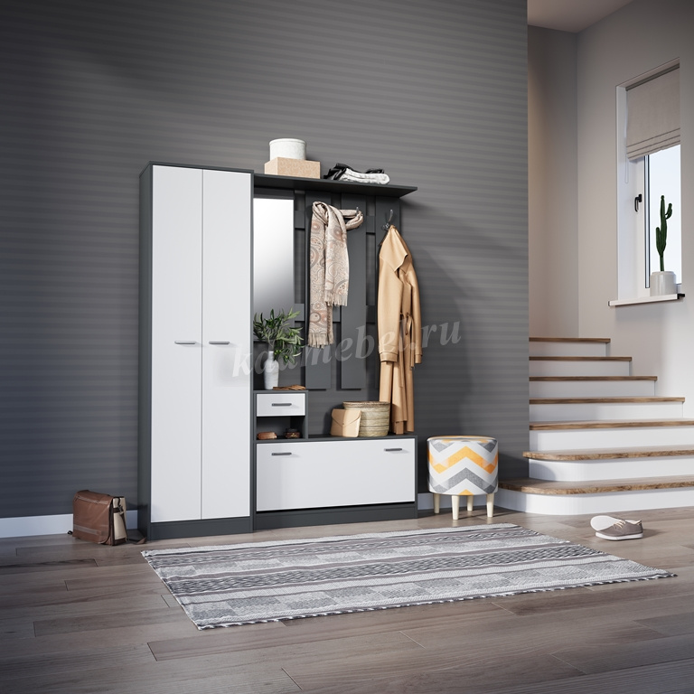Шкаф «Интер» - это удобное и функциональное место для хранения верхней одежды, обуви, сумок. Выполнен в стиле минимализм: простота, строгая геометрия, отсутствие декора. Благодаря классической нейтральной цветовой гамме гармонично впишется в любой интерьер. Подойдет для небольшой прихожей. Может использоваться как отдельный модуль, так и в составе с прихожей «Интер».