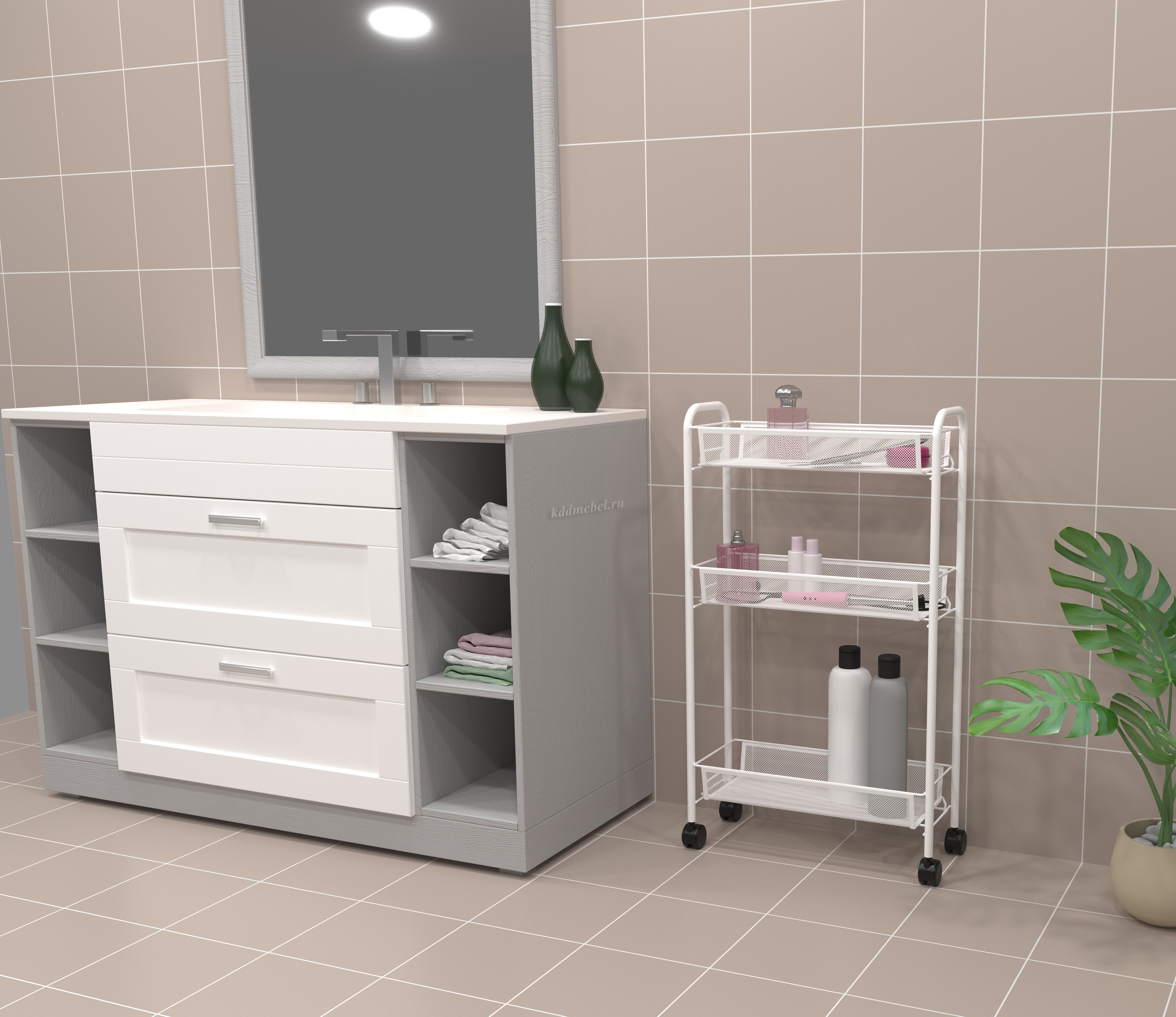 Описание Этажерка Ладья-1К на колесиках (Белый)