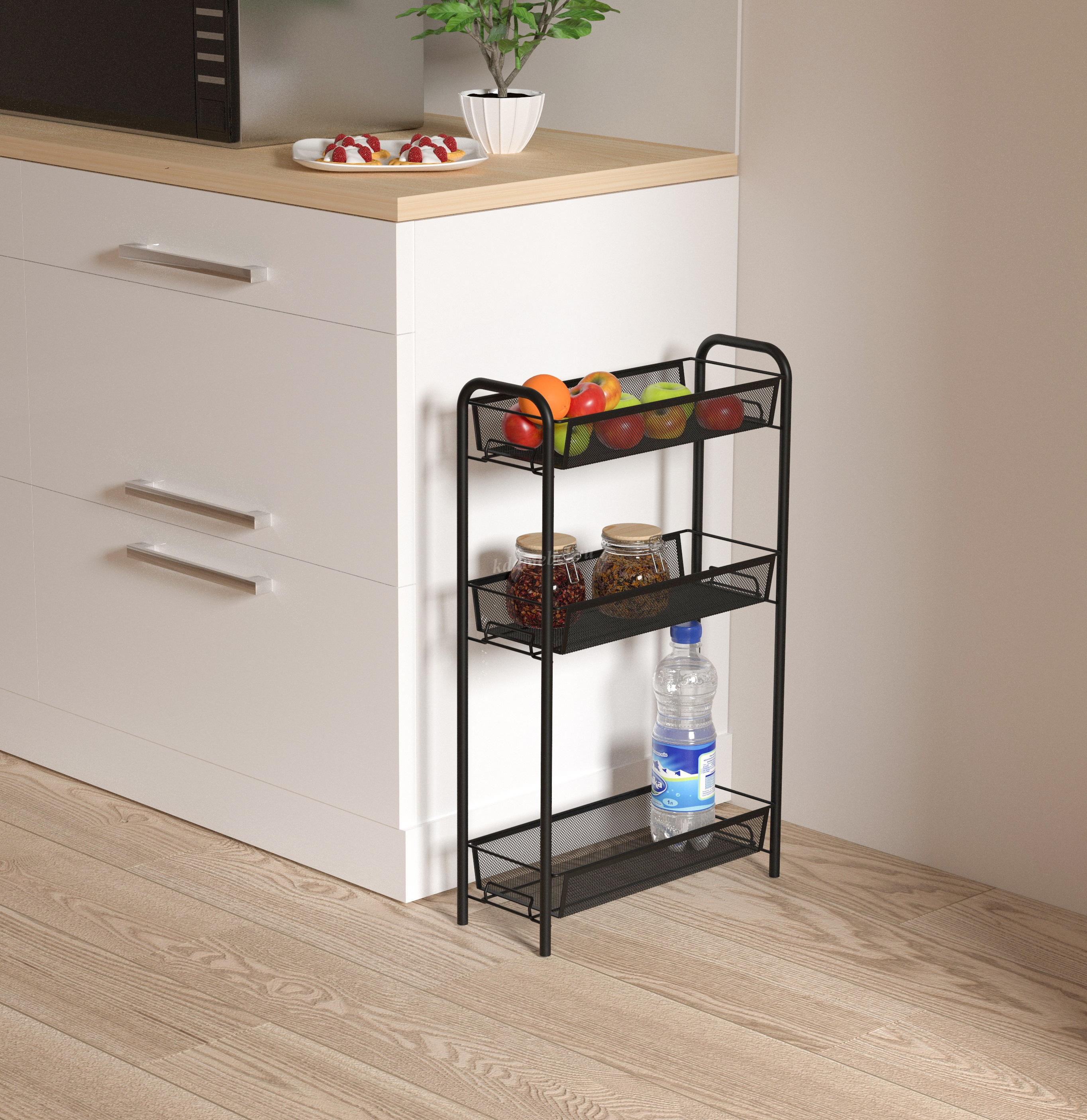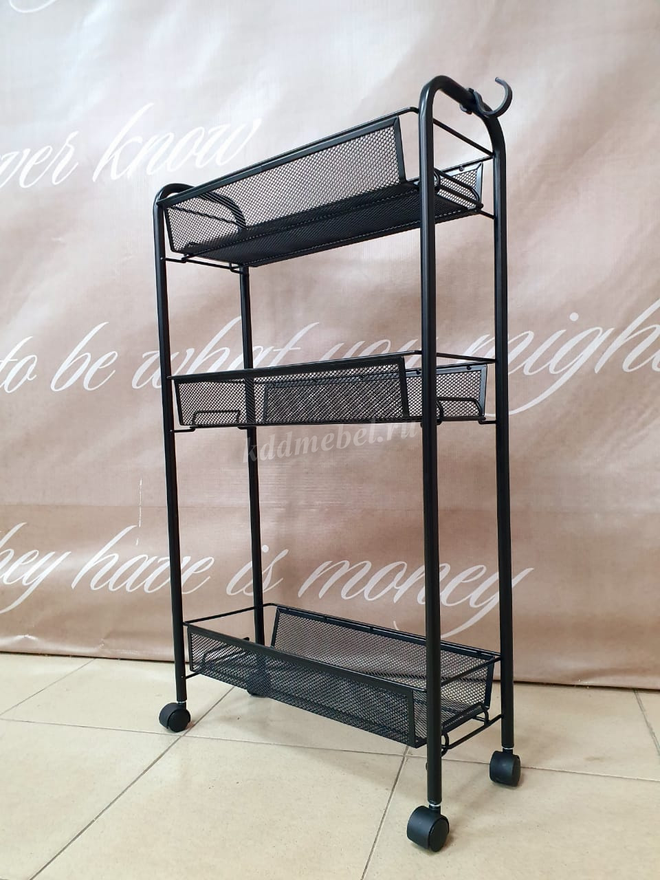 Описание Этажерка Ладья-1К на колесиках (Черный)