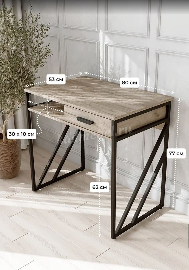 Описание Стол письменный Лорена (Дуб крафт серый/Черный)