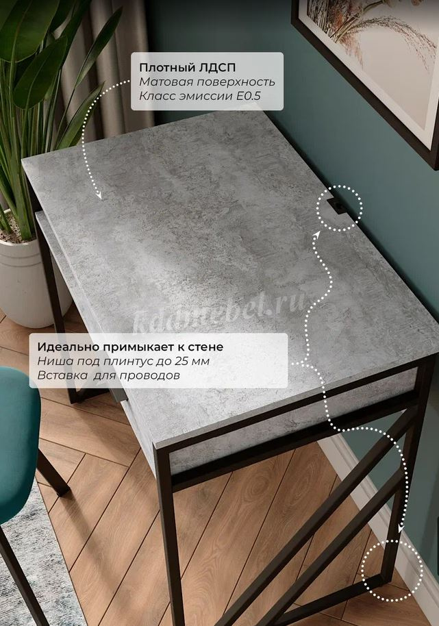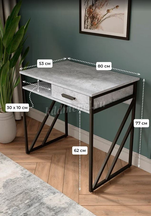 Описание Стол письменный Лорена (Цемент светлый/Черный)