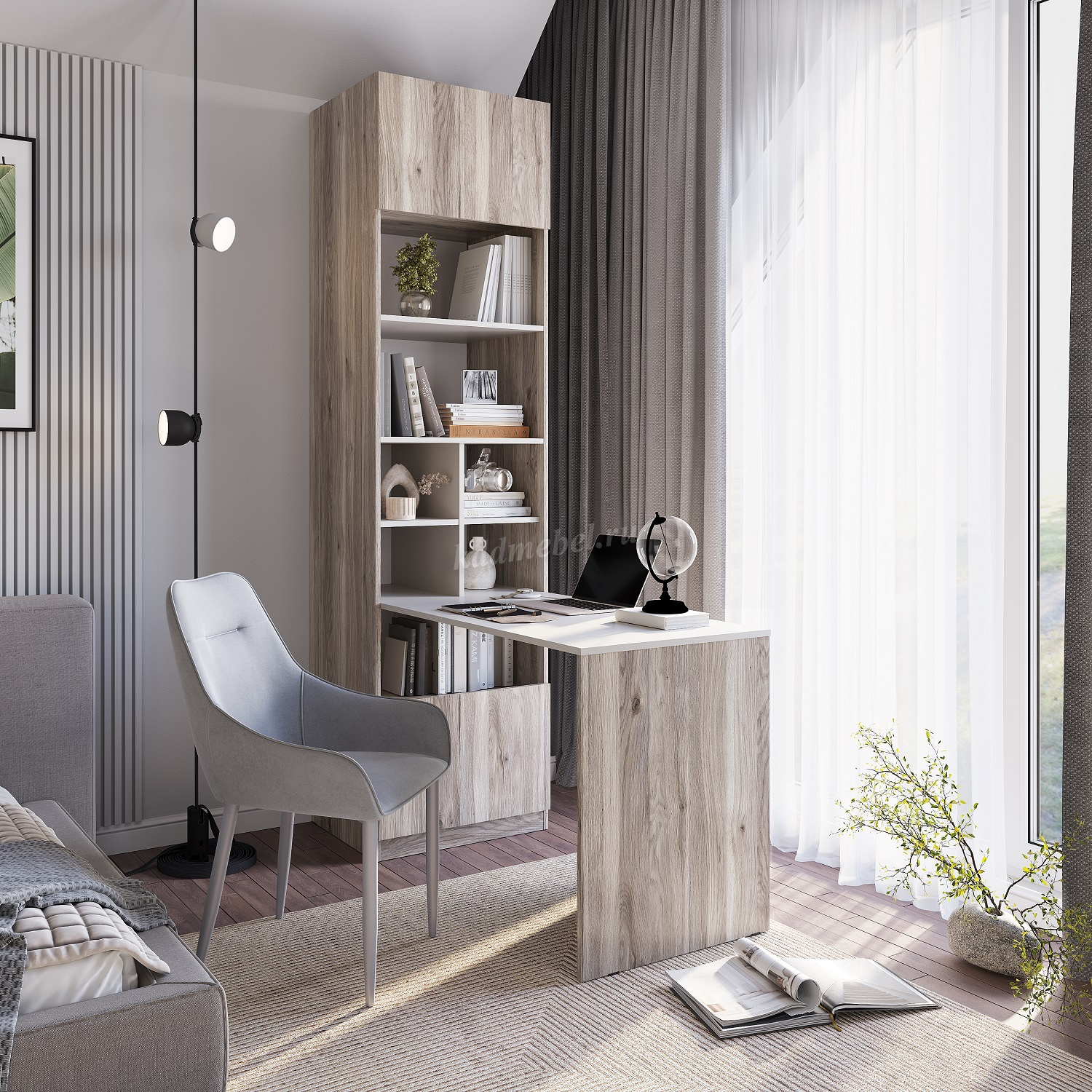 Описание Стол письменный-шкаф Урбан (Дуб смоки/Кашемир)