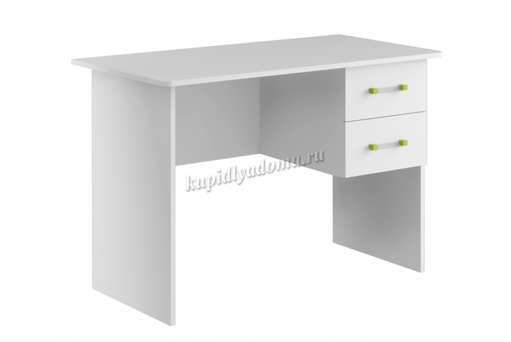 Письменный стол имеет просторную столешницу и два выдвижных ящика полного выдвижения.
