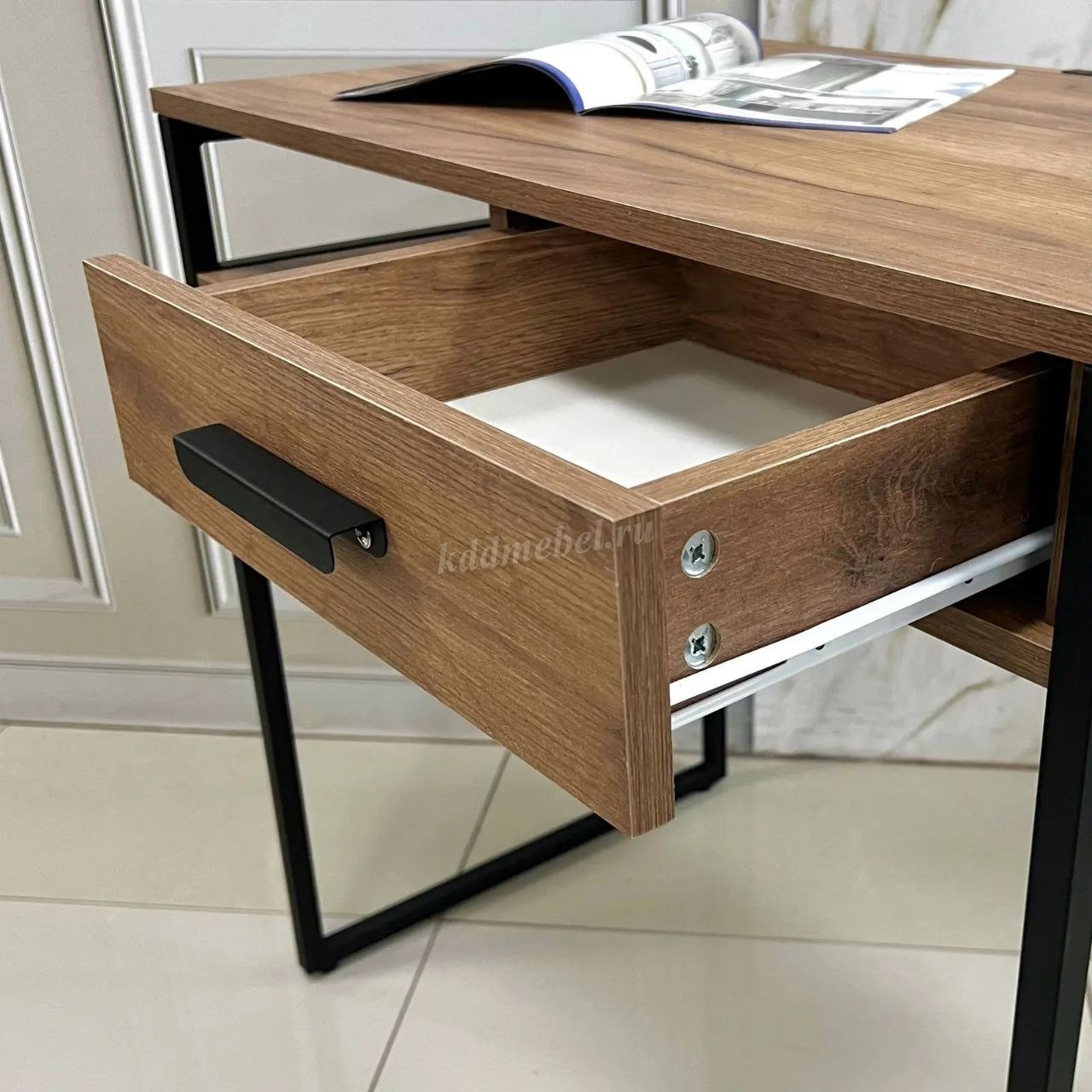 Описание Стол письменный Стелла (Дуб крафт табачный/Черный)