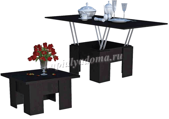 В современном интерьере не обойтись без компактного журнального стола-трансформер. Практичный и многофункциональный, он станет лучшим решением для интерьера. А его стильный и эргономичный дизайн послужит настоящим украшением любого помещения. Всего за несколько секунд элегантный журнальный столик способен превратиться в игровой вариант или в полноценный обеденный стол. Отличный столик для истинных ценителей лаконичной современной мебели.